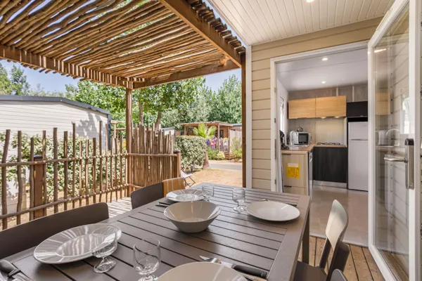 Klimatisierte Cottages, bestehend aus 2 oder 3 Schlafzimmern und einem Badezimmer, einer Couchecke mit TV, einer Küche mit Geschirrspüler, Senseo-Kaffeemaschine, Wasserkocher, Toaster. Terrasse mit Gartenmöbeln, .